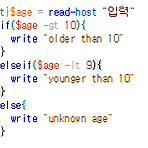 기본적인 switch 일단 기본적인 switch 문입니다. C를 하셨다고 가정하고 금방 이해하실 것이라고 봅니다 ㅋㅋ $computername = read-host 'Enter computer name'switch($computername){'com1'{write "aaaa"}'com2'{write "bbbb"}default {write 'cccc'}} wildcard switch 두 번째는 와일드 카드를 옵션을 넣은 swtich 문입니다. * 의 의미는 대부분 아실 것이라 생각됩니다. 간단히 모든 것이라는 의미인데wildcard 옵션을 주고나서 *을 붙여주면 aaa로 시작되는 모든 것을 case로 인식합니다. $computername = read-host switch -wildcard($computer..